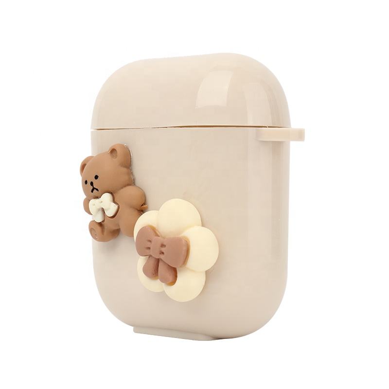 Boucle latérale unique Tpu Design ours mignon accessoires d'écouteurs étui de protection d'écouteurs sans fil avec Bracelet en perle