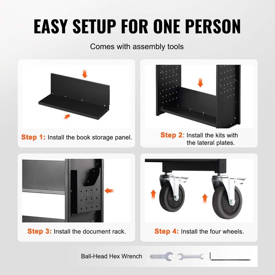 Chariot à livres à roulettes simple face, capacité 330 lb, dimensions 79,0 cm x 38,7 cm x 124,9 cm, mobilier de bibliothèque, étagères inclinées en V de 4 pouces avec verrouillage, capacité totale 310 lb