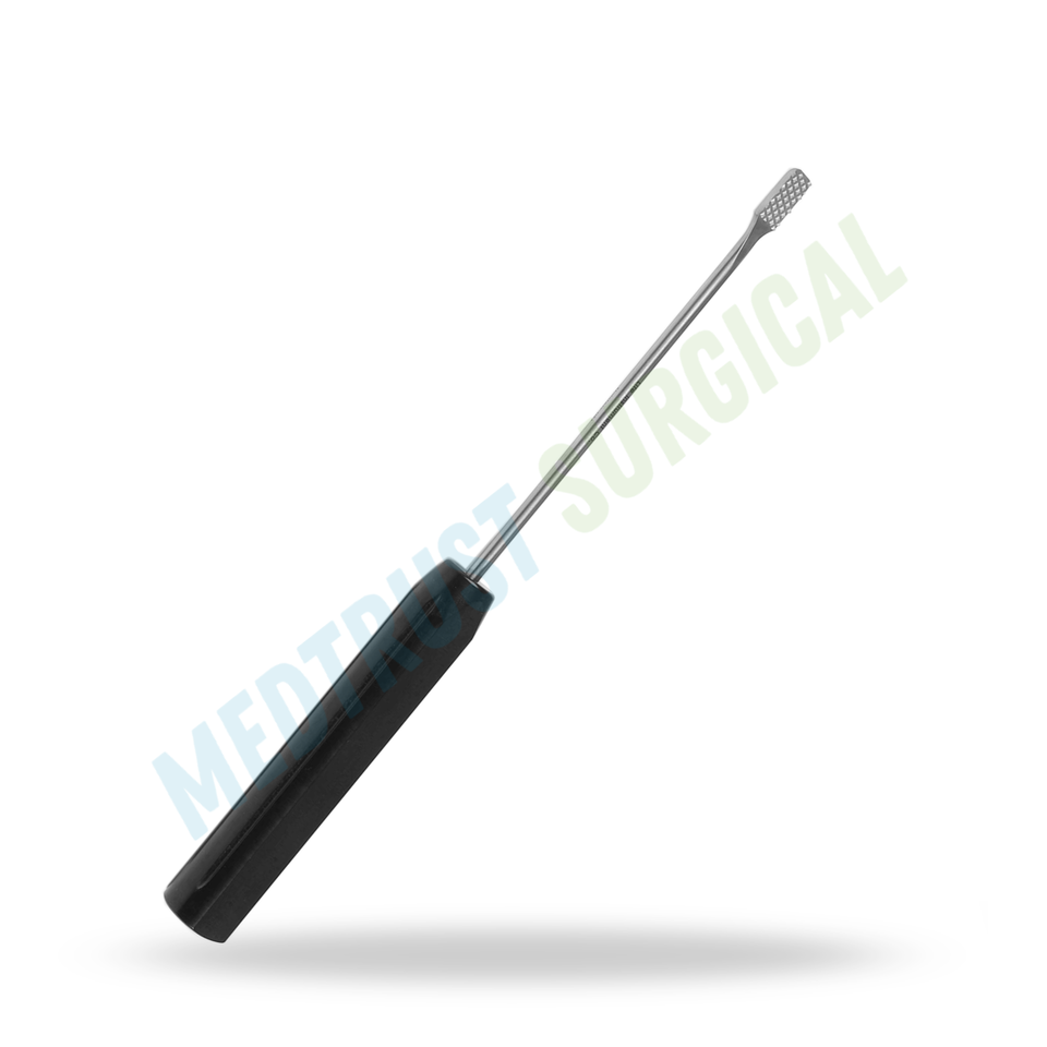 Spécification:Disponible en longueurs totales de 15 et 18 pouces, avec une surface de râpe de précision simple face, un manche ergonomique, une construction en acier inoxydable de qualité chirurgicale et conçu pour les procédures de fusion intervertébrale de la colonne vertébrale.