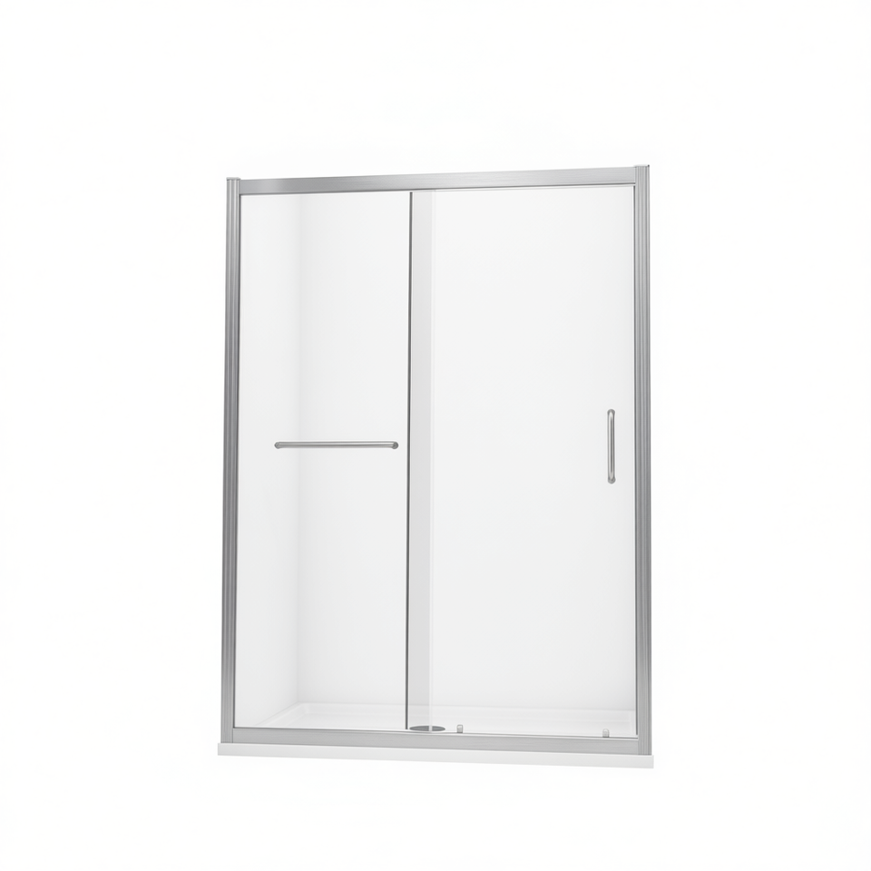 Porte de douche coulissante simple 48 po x 72 po en nickel brossé avec cadre en verre trempé, design minimaliste