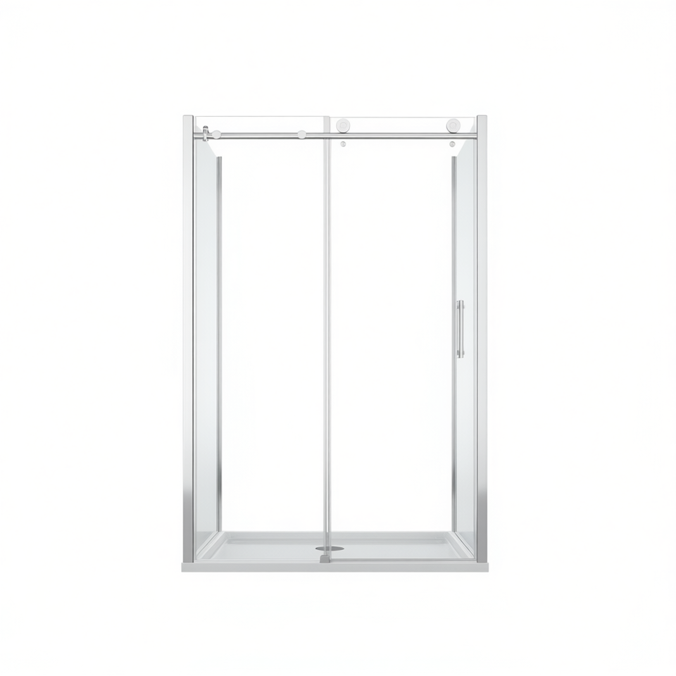 Cabine de douche coulissante simple 48L x 76H avec cadre chromé et verre trempé de 6 mm, design rectangulaire contemporain