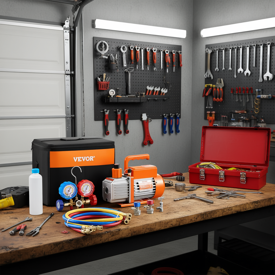 Kit d'outils de réparation de climatisation Vevor avec manomètre de pompe à vide AC 3,5 CFM pour réfrigérant R134a