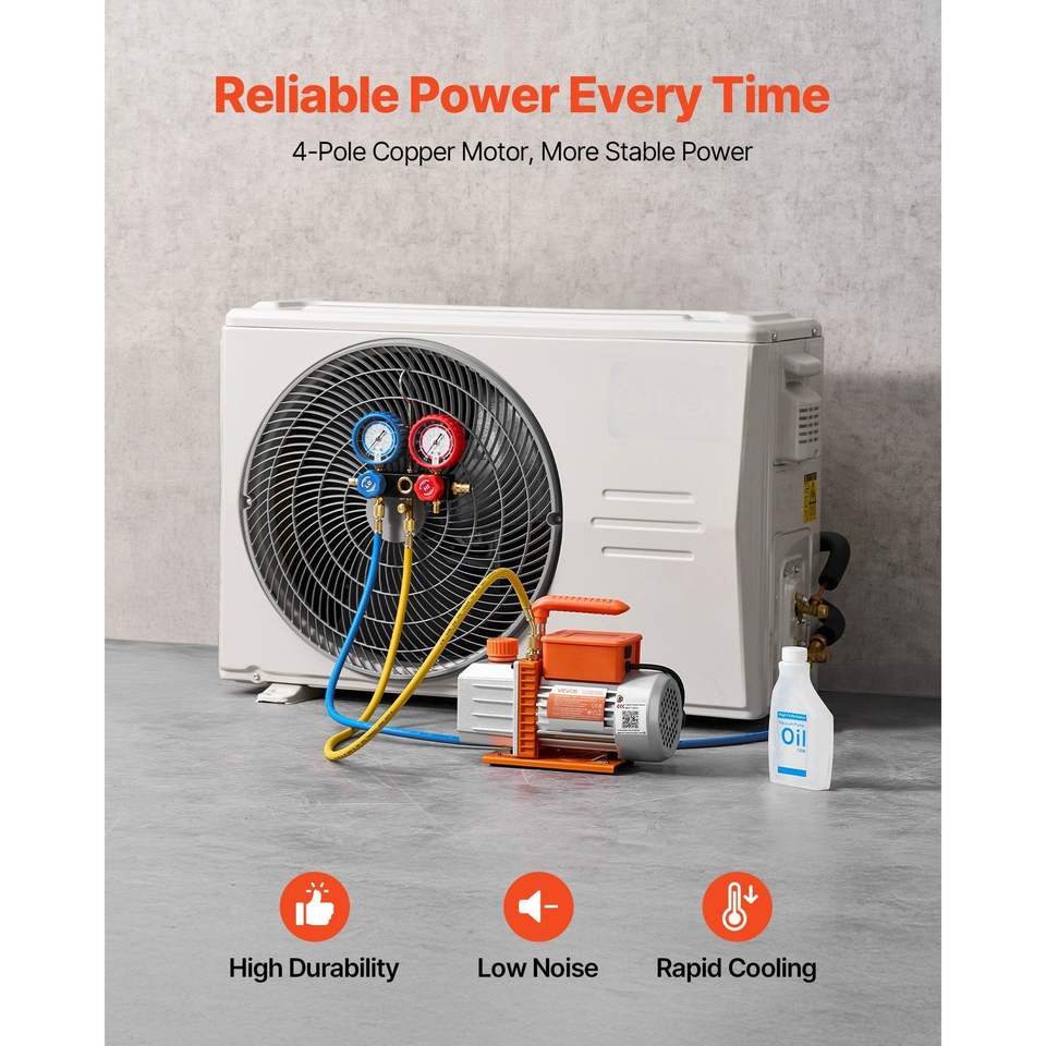 Pompe à vide rotative à une seule étape pour CVC, 4,5 CFM, 1/3 HP, kit de manomètre pour climatisation R134a R22 R410a R1234YF R32, climatisation automobile
