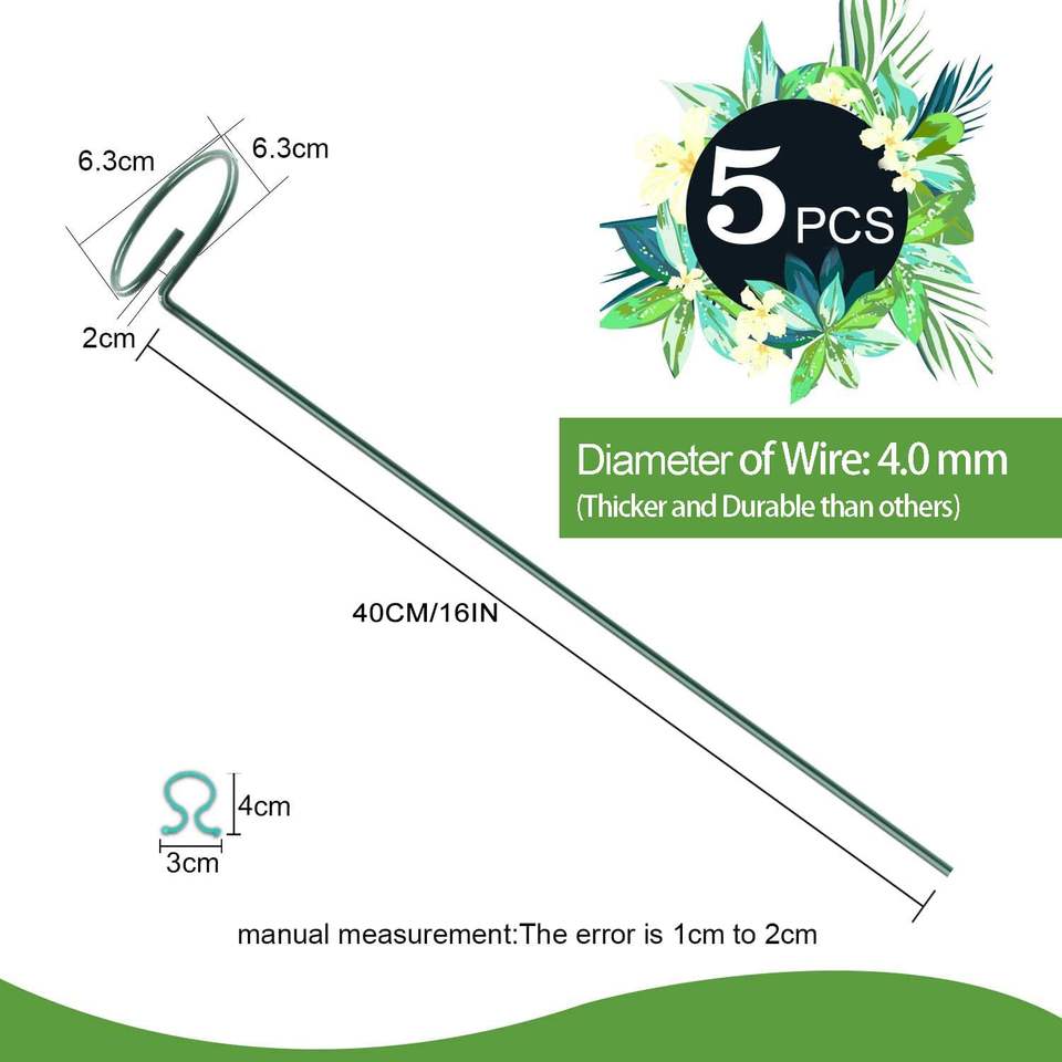 Support de plante à tige unique Supports d'anneaux en fil métallique Support en métal vert pour tomates orchidées Amaryllis Lily Rose utilisées avec de l'herbe