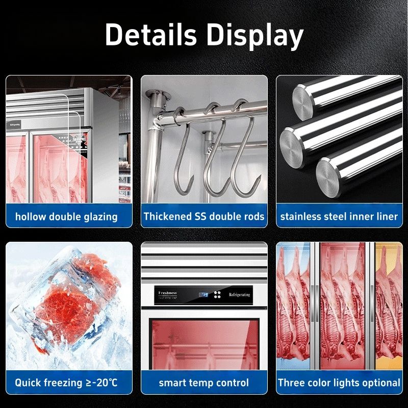 Congélateur vertical pour fruits de mer à température unique, 2 portes, application supermarché avec contrôle numérique de la température, refroidissement par air