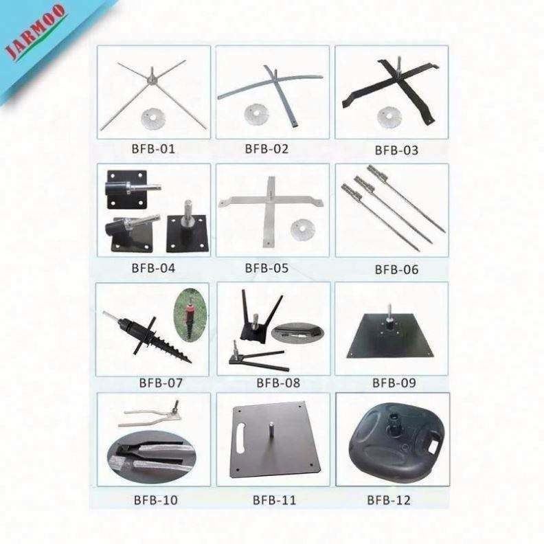 Pointe, vis, base en X avec sac d'eau, plaque métallique, etc.