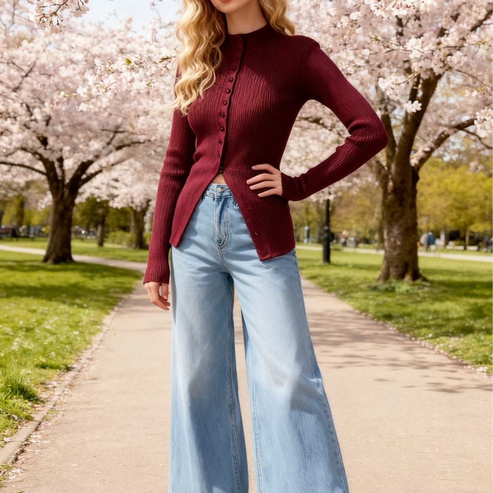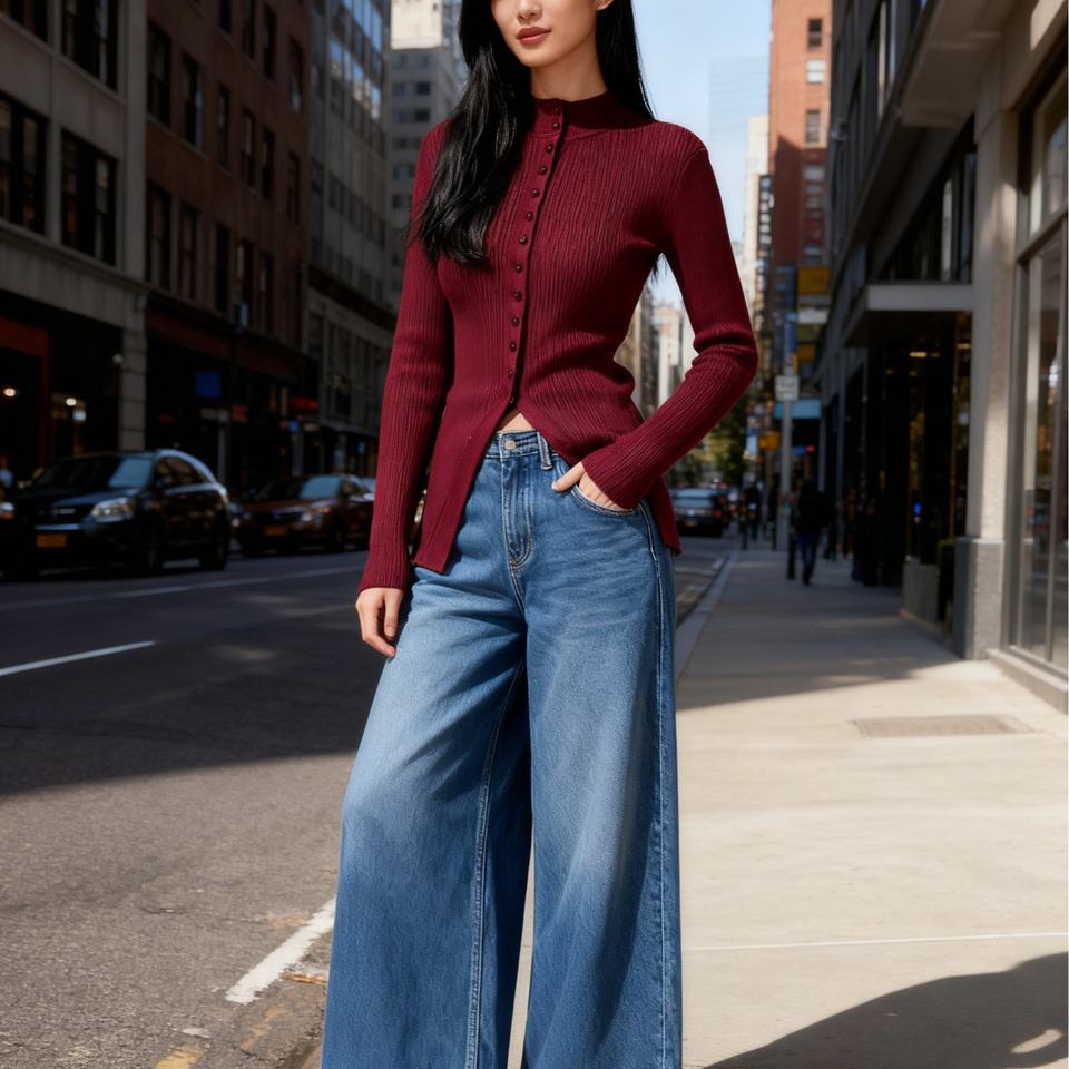 Pull en maille côtelée à col simple, pull moulant uni à manches longues pour femme, mode automne-hiver