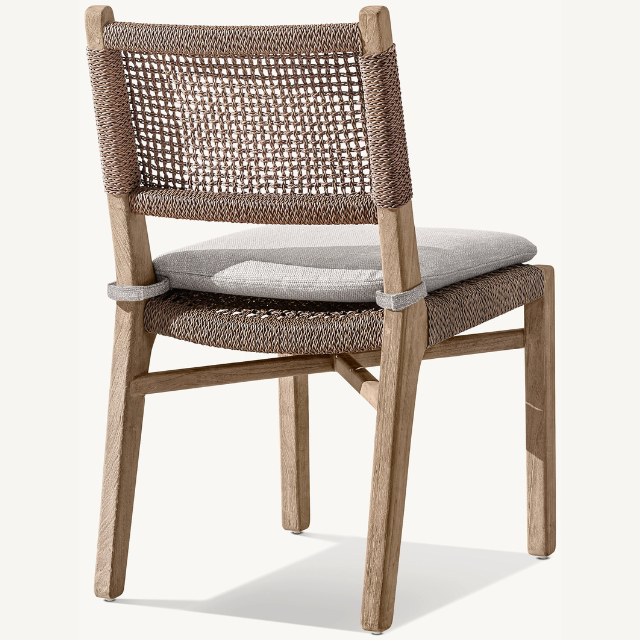 Single chair made of teak wood with rattan accents without arms for outdoor use such as in the garden or on the terrace
