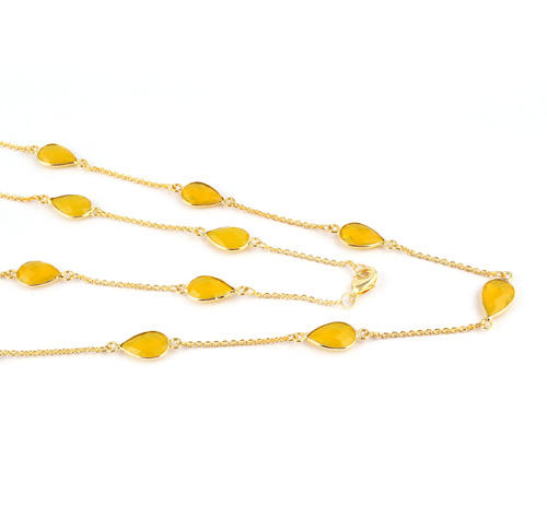 Collier multi-stations à lunette de couleur unique collier à chaîne en quartz jaune fait main ensemble de lunette collier double couche plaqué or 18 carats