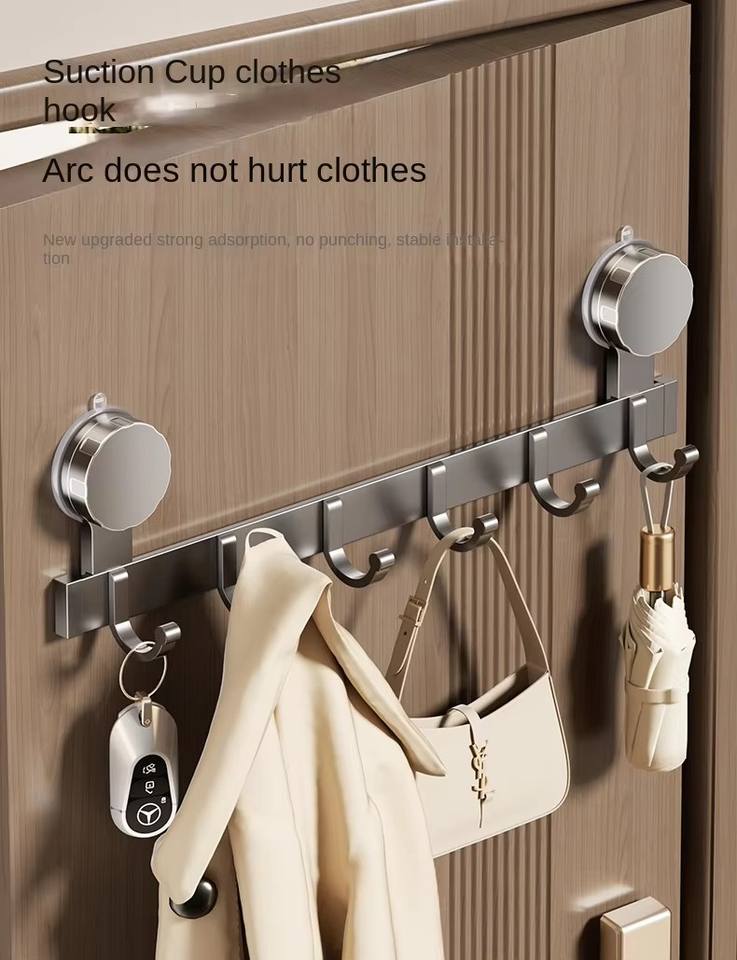 Crochet mural de salle de bain en aluminium robuste monocouche, flexible, détachable, écologique, à ventouse, sans perforation, pour cuisine