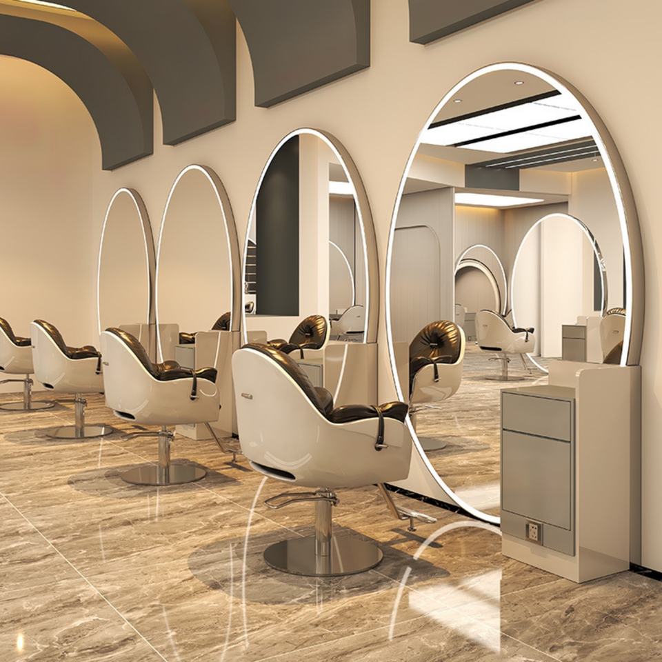 Style:Mobilier de salon de coiffure : miroir de barbier et poste de travail
