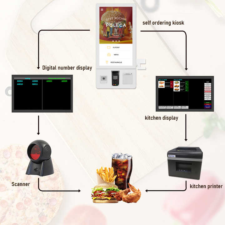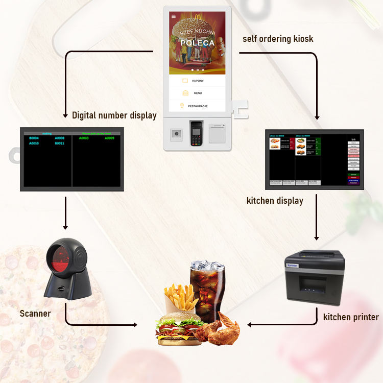 Sinmar Commande alimentaire prenant jeton Pos système payer kiosque en libre-service commande ramassage file d'attente paiement système de cuisine de restaurant intelligent