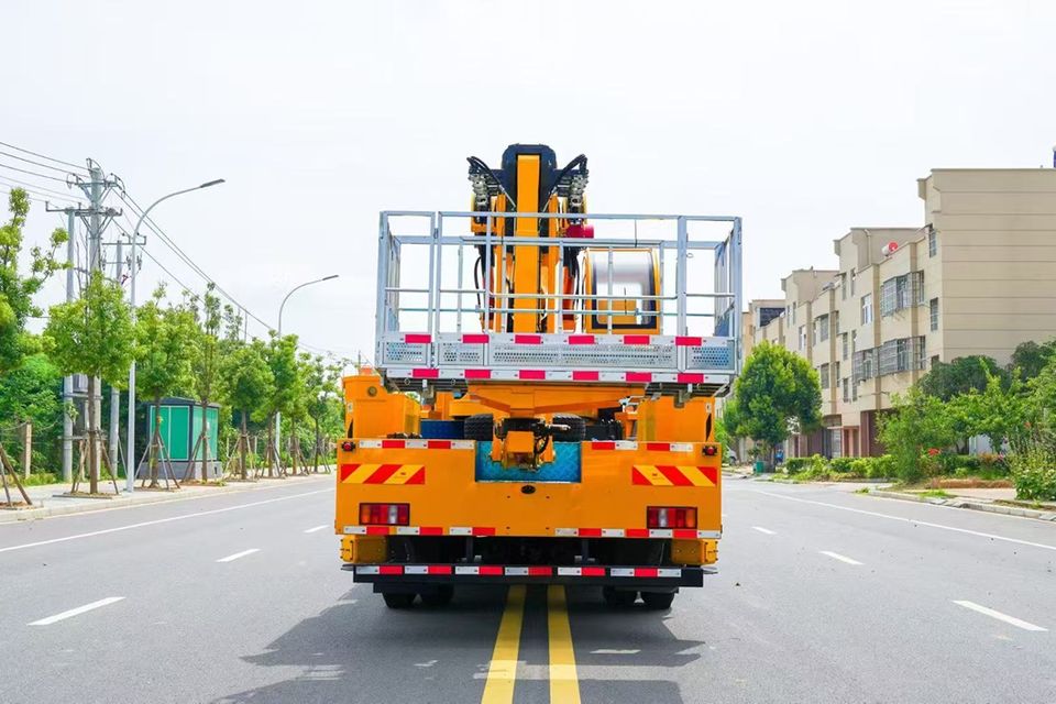 Camion plateforme élévatrice Sinotruk HOWO avec cabine couchette et nacelle de travail à flèche télescopique 7 sections, à vendre à prix d'usine compétitif