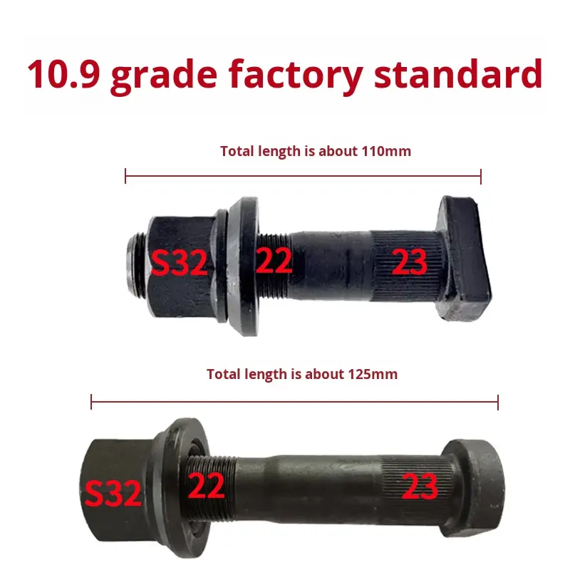 Sinotruk Howo HOWO2197 boîtier d'essieu d'ingénierie vis de pneu avant arrière en acier boulons de moyeu de roue 23mm d'épaisseur haute résistance 10.9 Grade