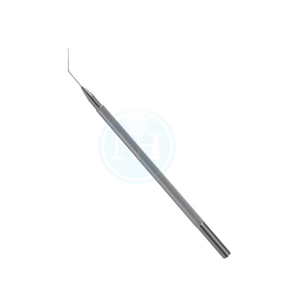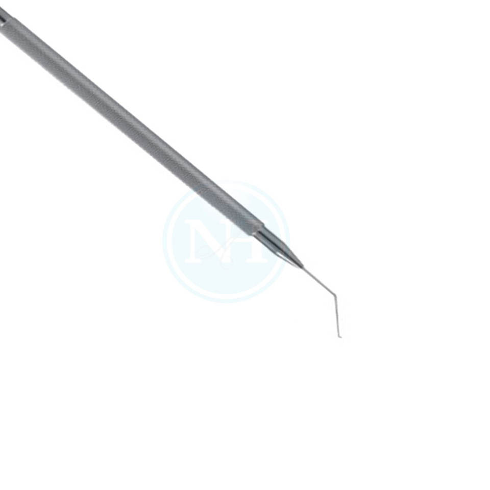 Nom du produit:Crochet de manipulation de lentilles Sinskey, poignée ronde, pointe émoussée angulaire de 0,2 mm de diamètre