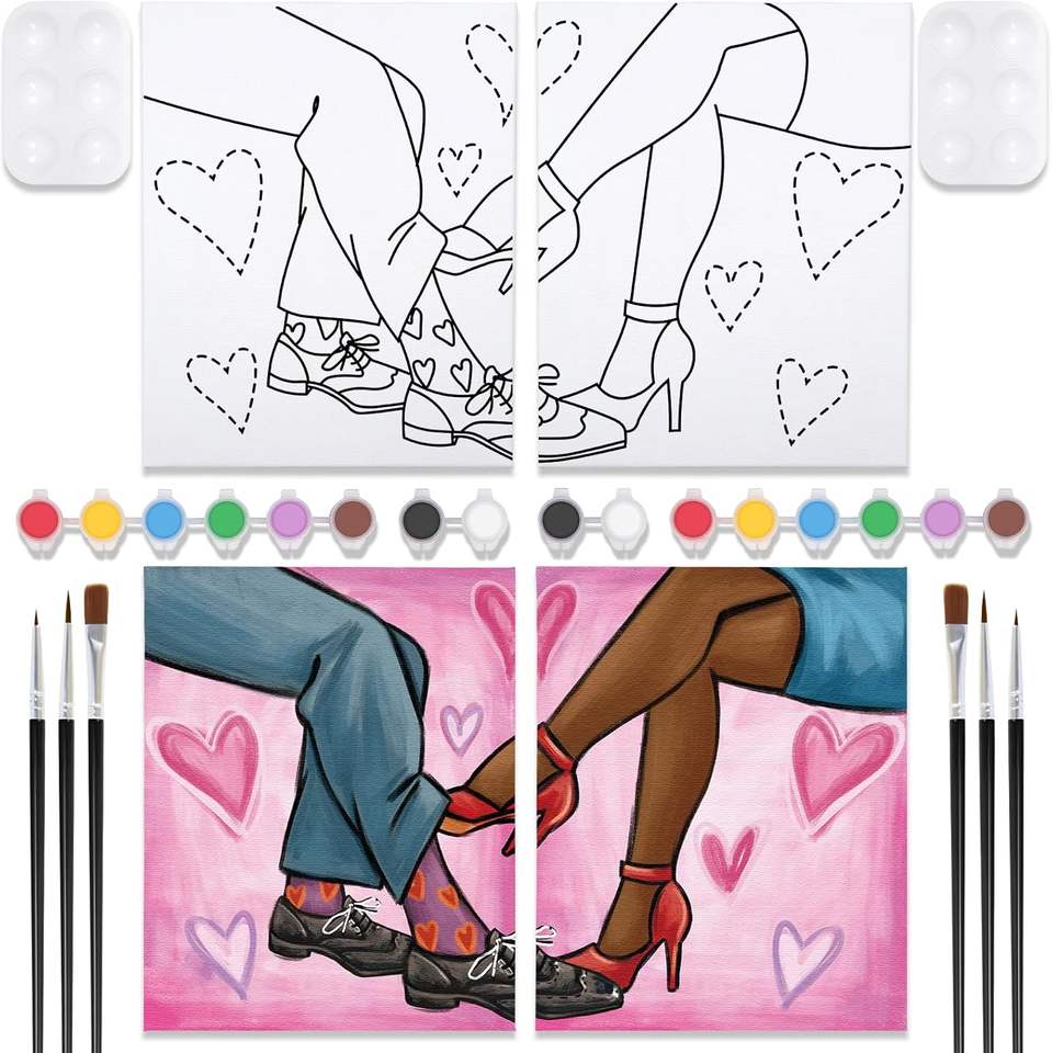 Sip Paint Kit Ensemble d'art sur toile pré-dessiné pour adultes Love Theme Date Night Games Contour pour la décoration intérieure et les enfants