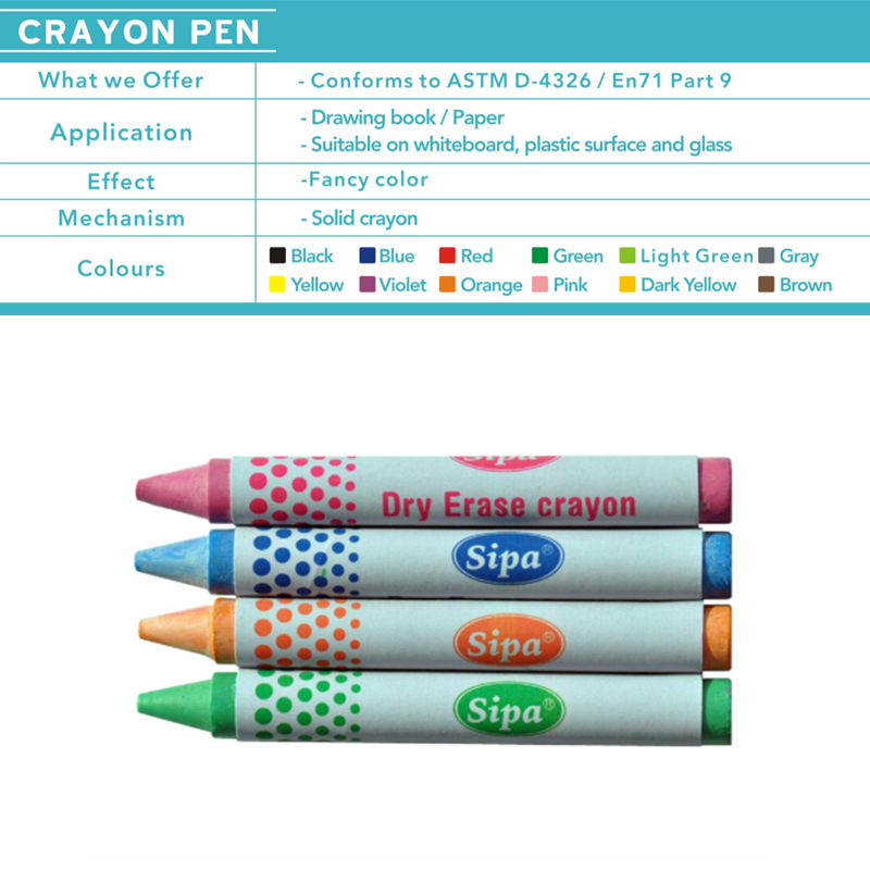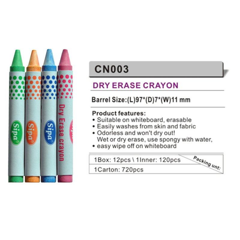Sipa CN003 Crayons classiques multicolores effaçables à l'eau ou à sec Emballage en vrac facilement effaçable et durable