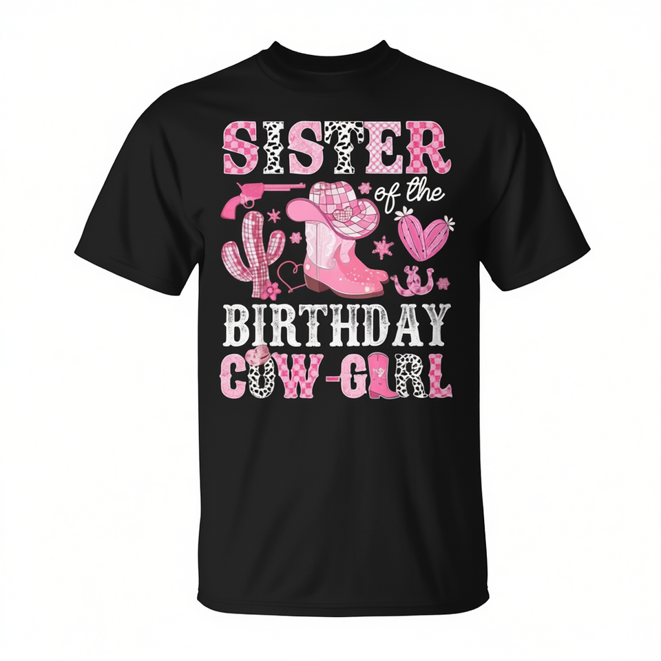 T-shirt rose Sister Of The Birthday Cowgirl Rodeo, design western pour filles, à porter pour les fêtes
