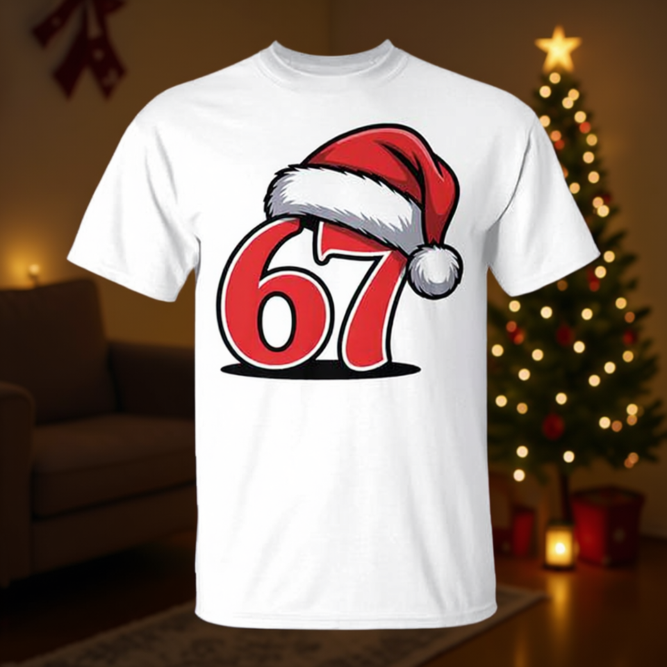 Six Seven 67 Meme Gen Slang Alpha Christmas Santa Hat T-shirt