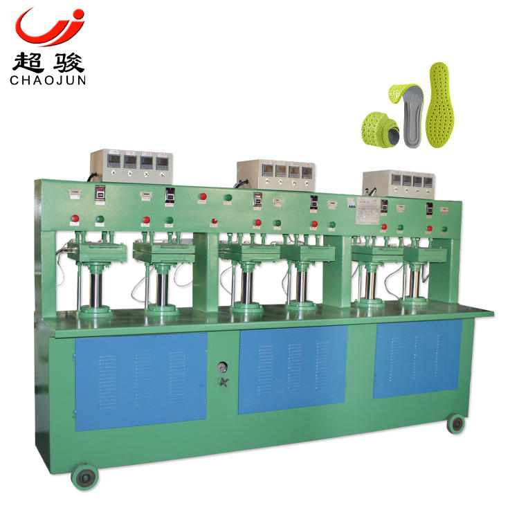 Machine de formage à chaud à six stations pour cuir, PU, EVA et mousse - Type portique avec une pression de 16 tonnes et 350 ° Contrôle intelligent de la température