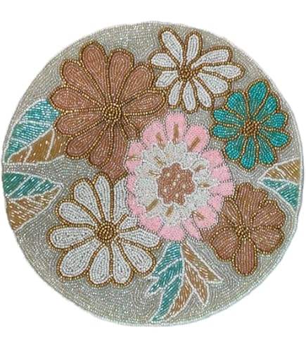 Set de table vintage en perles de couleur unie, taille 14 pouces, durable, rond, écologique, fait à la main pour les fêtes, la maison, la table