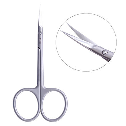 Ciseaux à cuticules professionnels en acier inoxydable taille 4, finition sablée, lame courbée à pointe fine, pour droitiers, durables