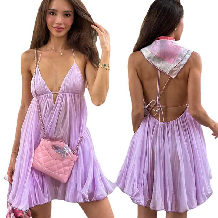 Robe en mousseline d'été chatoyante, élégante robe courte dos nu pour soirée, robe de soirée unie 2025