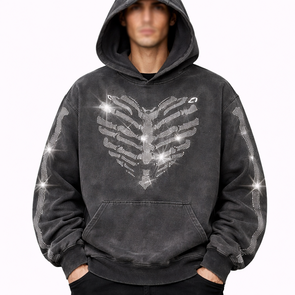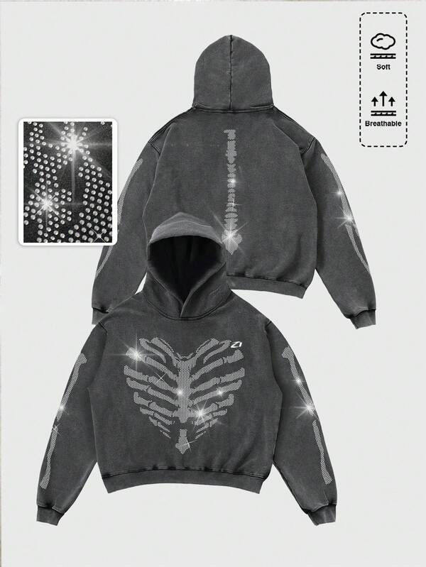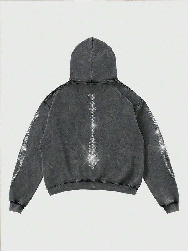 Sweat-shirts à capuche pour hommes avec strass, 400 GSM, en molleton mélangé coton, coupe oversize, style streetwear, fabricant OEM sous marque privée