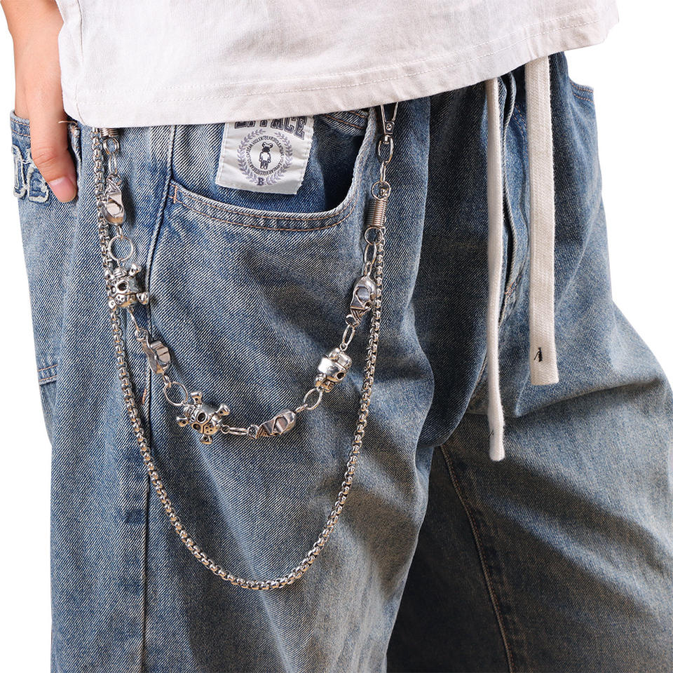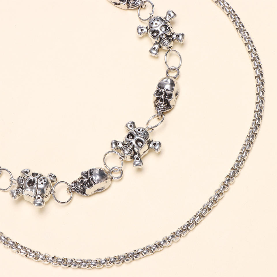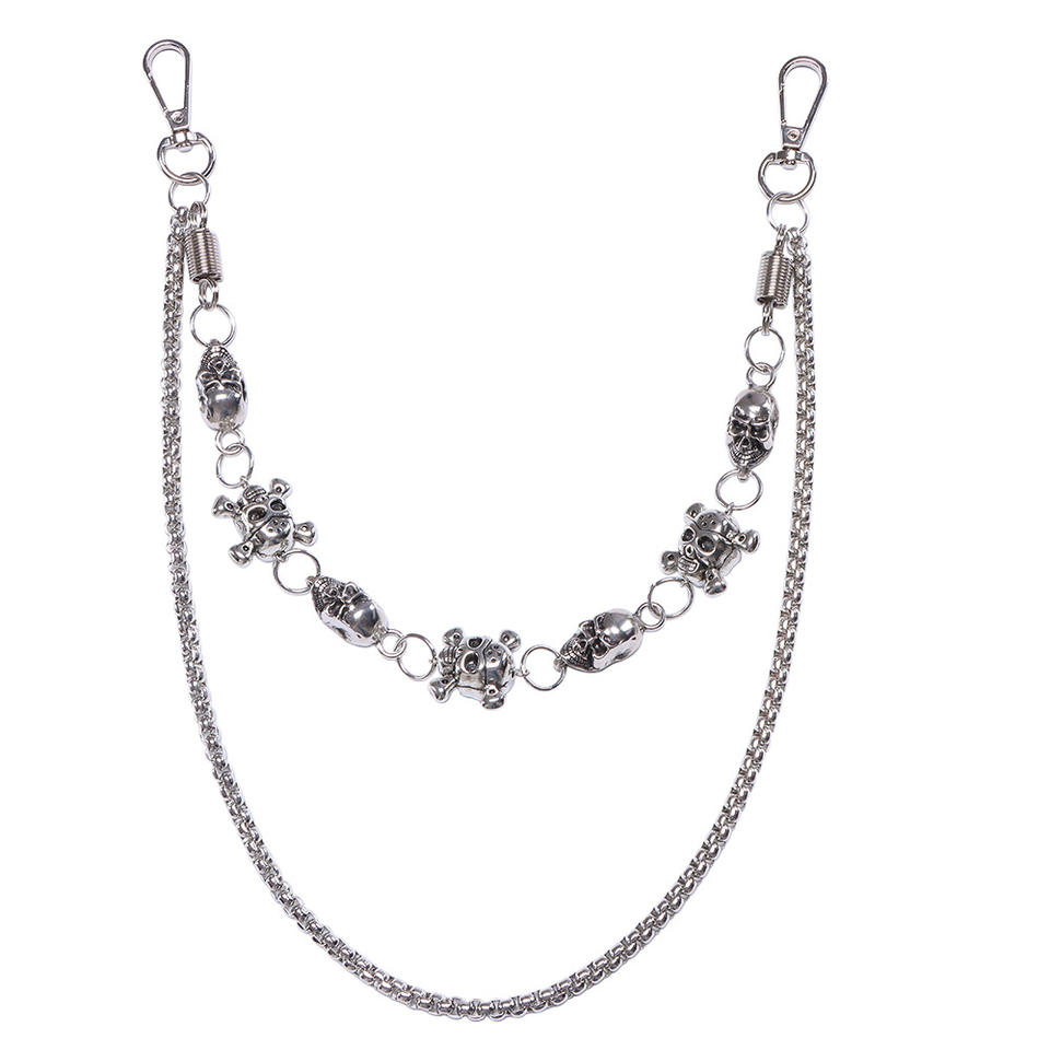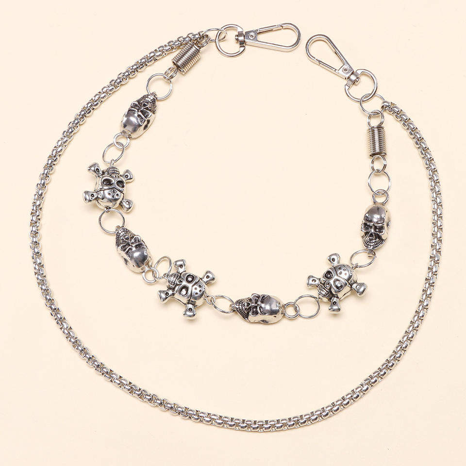 Chaîne de taille squelette en argent tibétain double couche, style Hip Hop Punk Street, chaîne pour jean, chaîne de corps décontractée et tendance