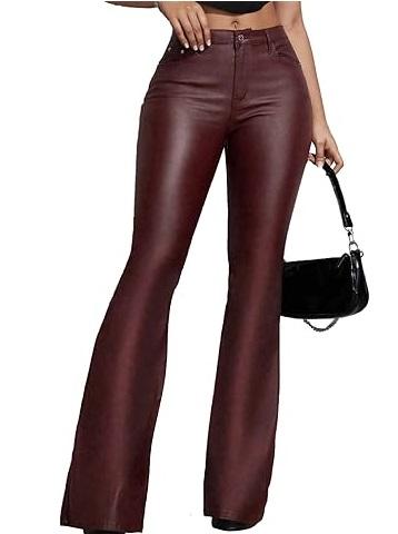 Pantalon en cuir de vachette uni, coupe ajustée, sexy, vêtement d'extérieur, couleur unie, évasé, imperméable, pour club, soirée