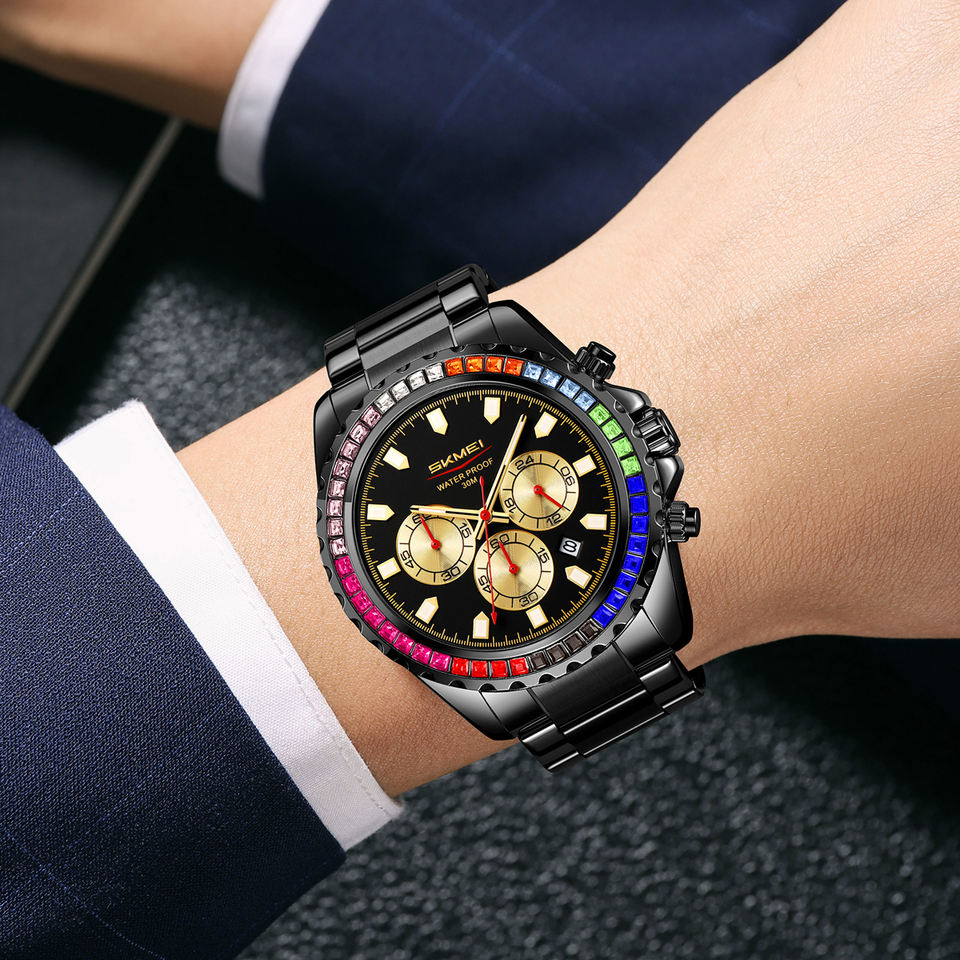 Feature:Waterproof, Water Resistant, Auto Date, Luminous, Day/Date, Date, chronograph, Stop Watch, Time