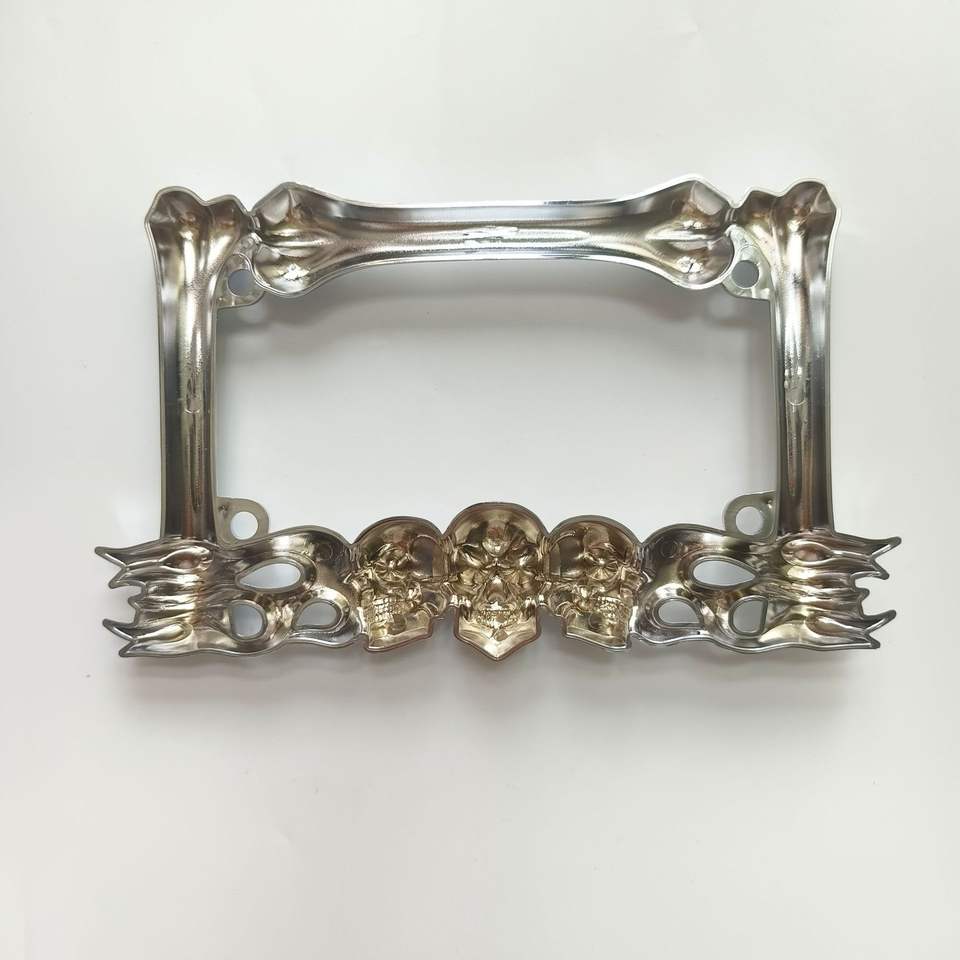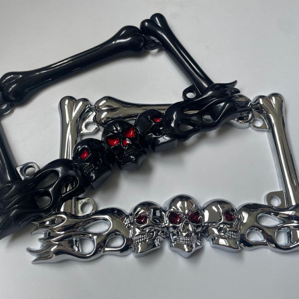 Cadre de plaque d'immatriculation de moto avec motif de crâne - Plaque d'immatriculation fantaisie en plastique ABS pour Harley, Chopper et motos personnalisées