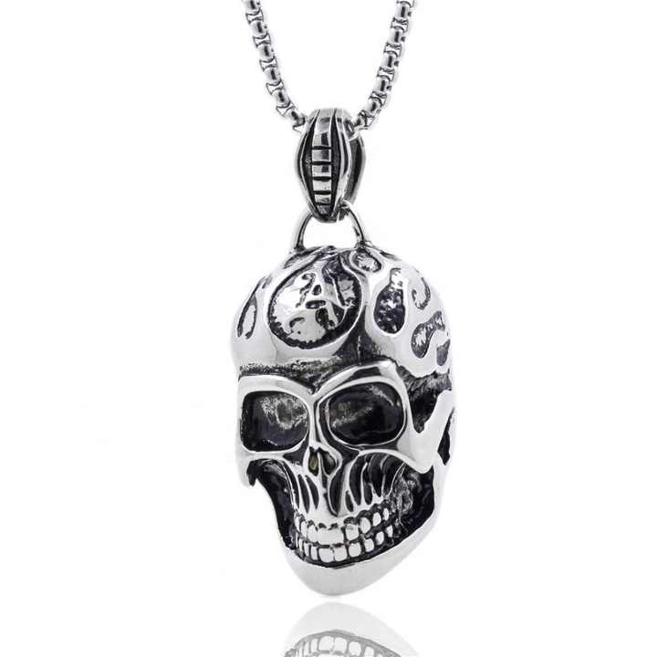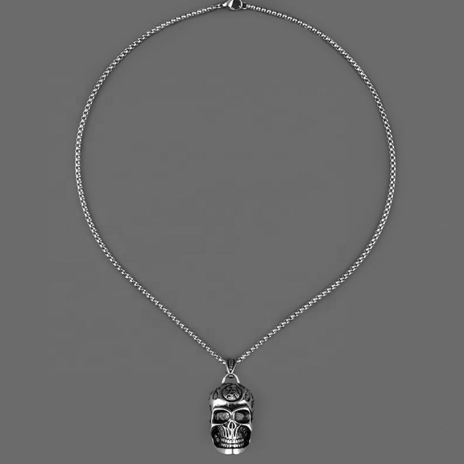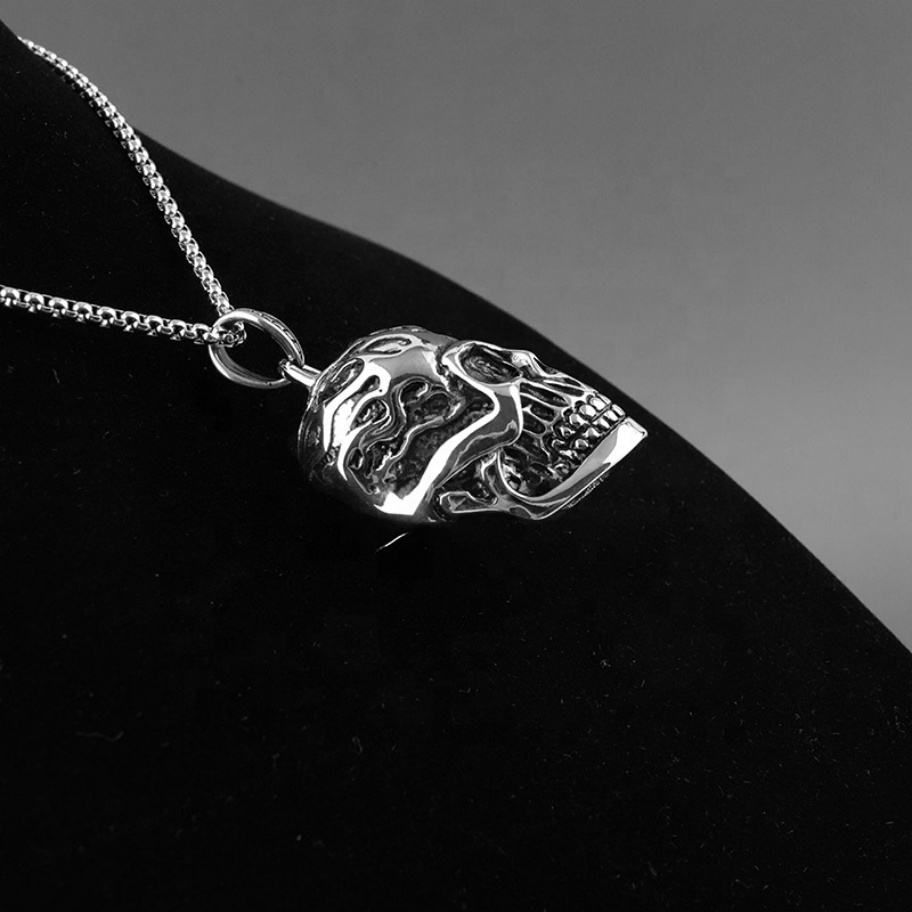 Colliers pendentifs design tête de crâne, bijoux punk hip-hop, accessoires pour garçons, bijoux gothiques en acier inoxydable moulé