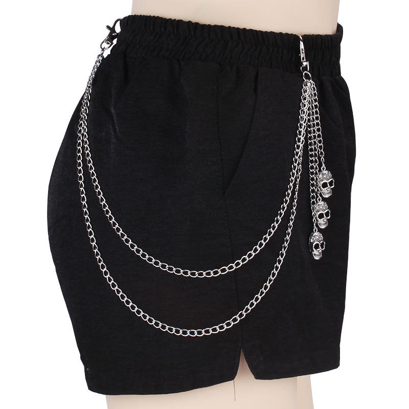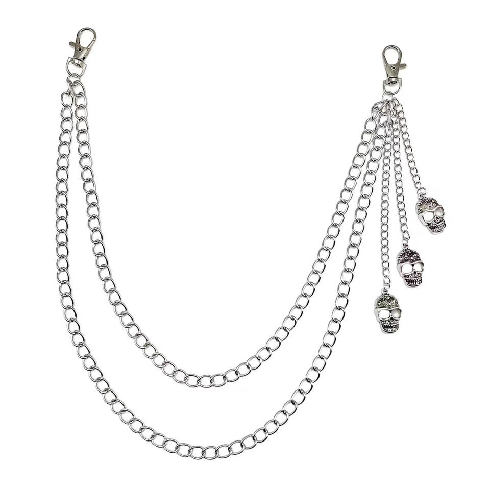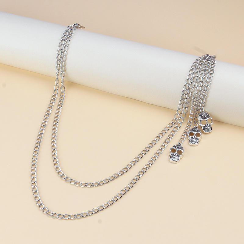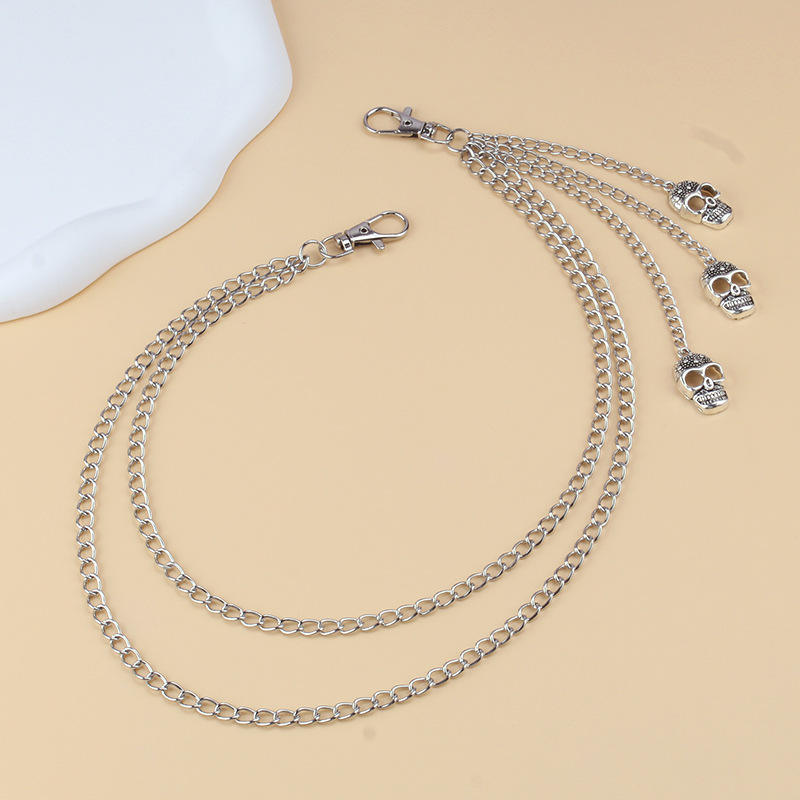 Chaîne de pantalon Crâne Double Couche en Métal, Chaîne de Corps, Bijoux de Mode Halloween en Alliage de Zinc, Style Transfrontalier
