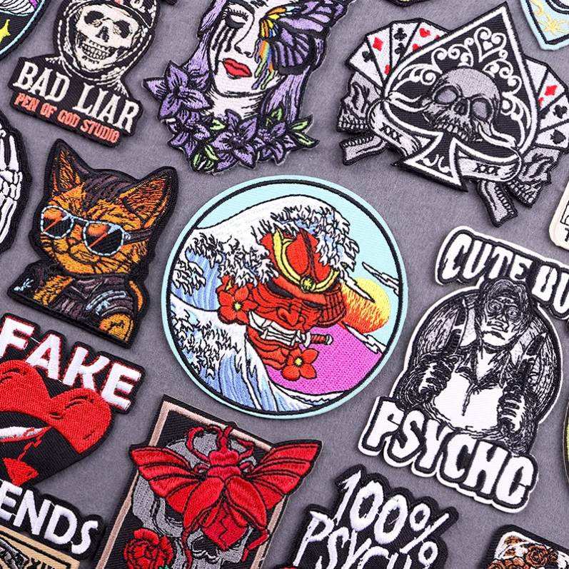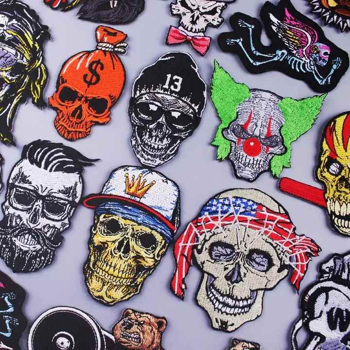 Patchs brodés personnalisés Crâne et Animaux style Punk, thermocollants, en gros pour vêtements, chapeaux et badges