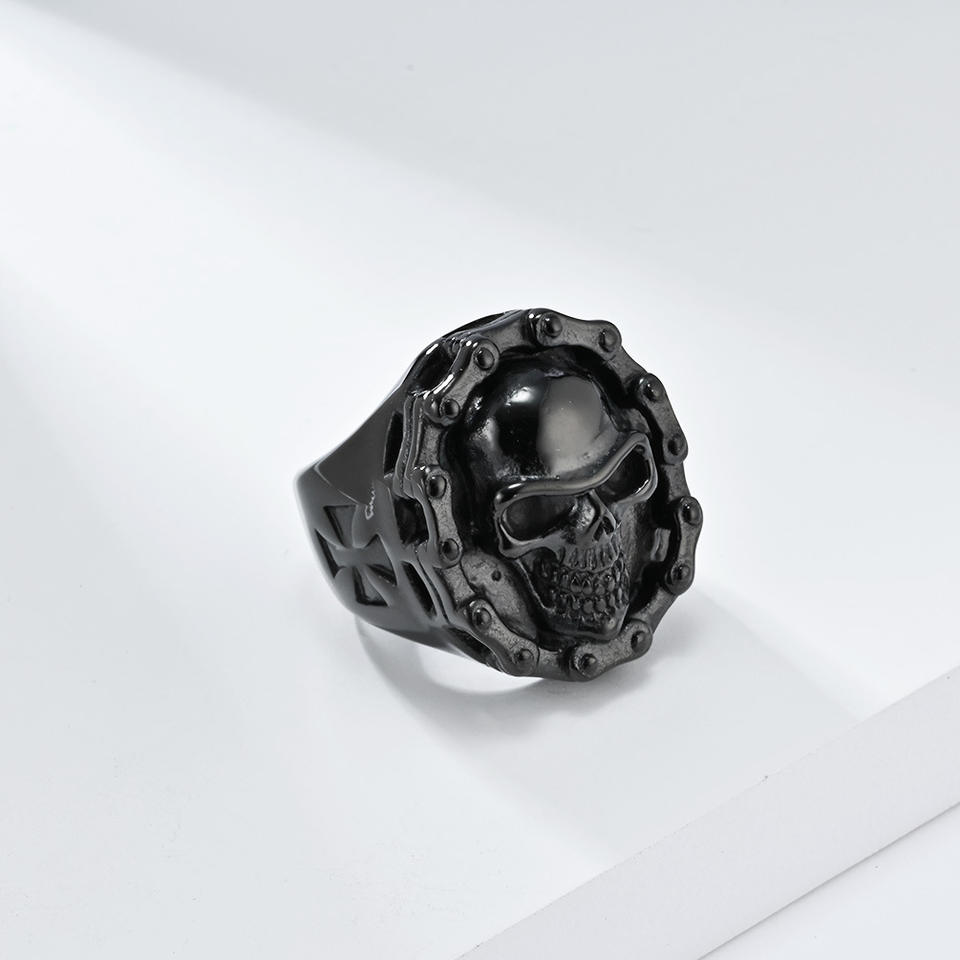 Bague tête de mort pour hommes, en alliage de zinc, noir, or, argent, bijoux décontractés, Style Punk, Design de chaîne de moto