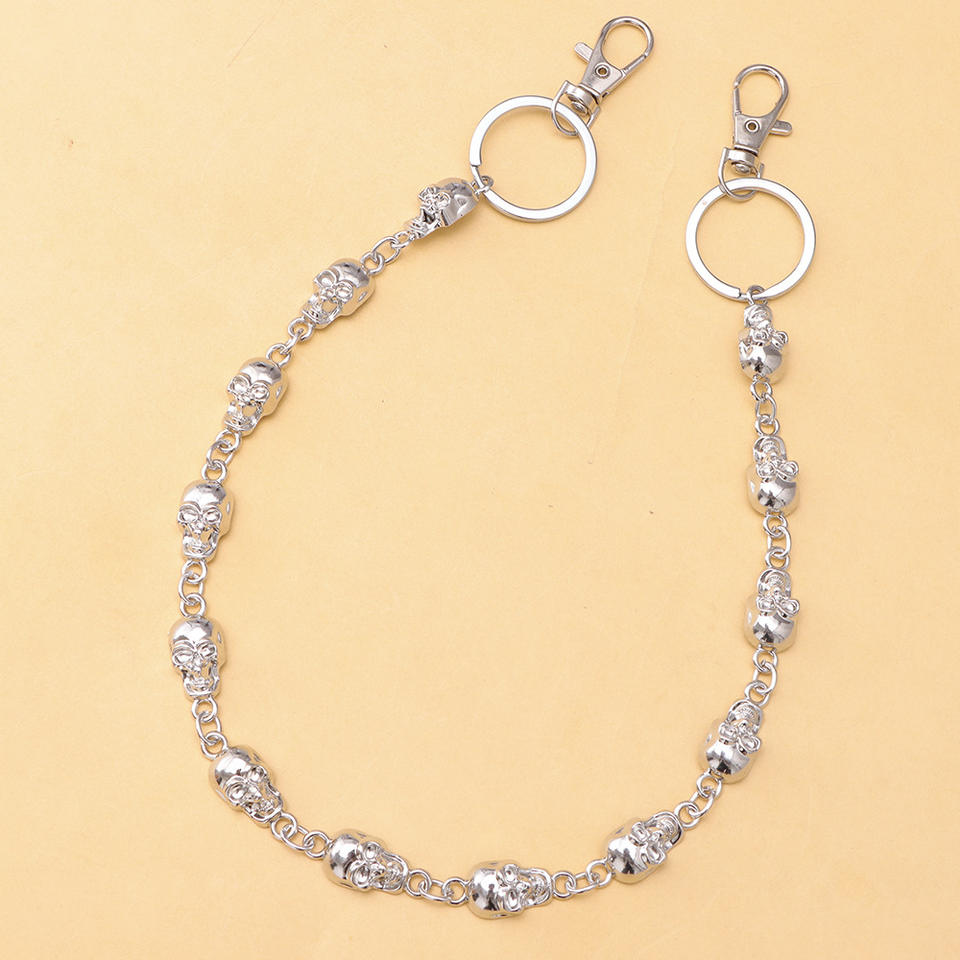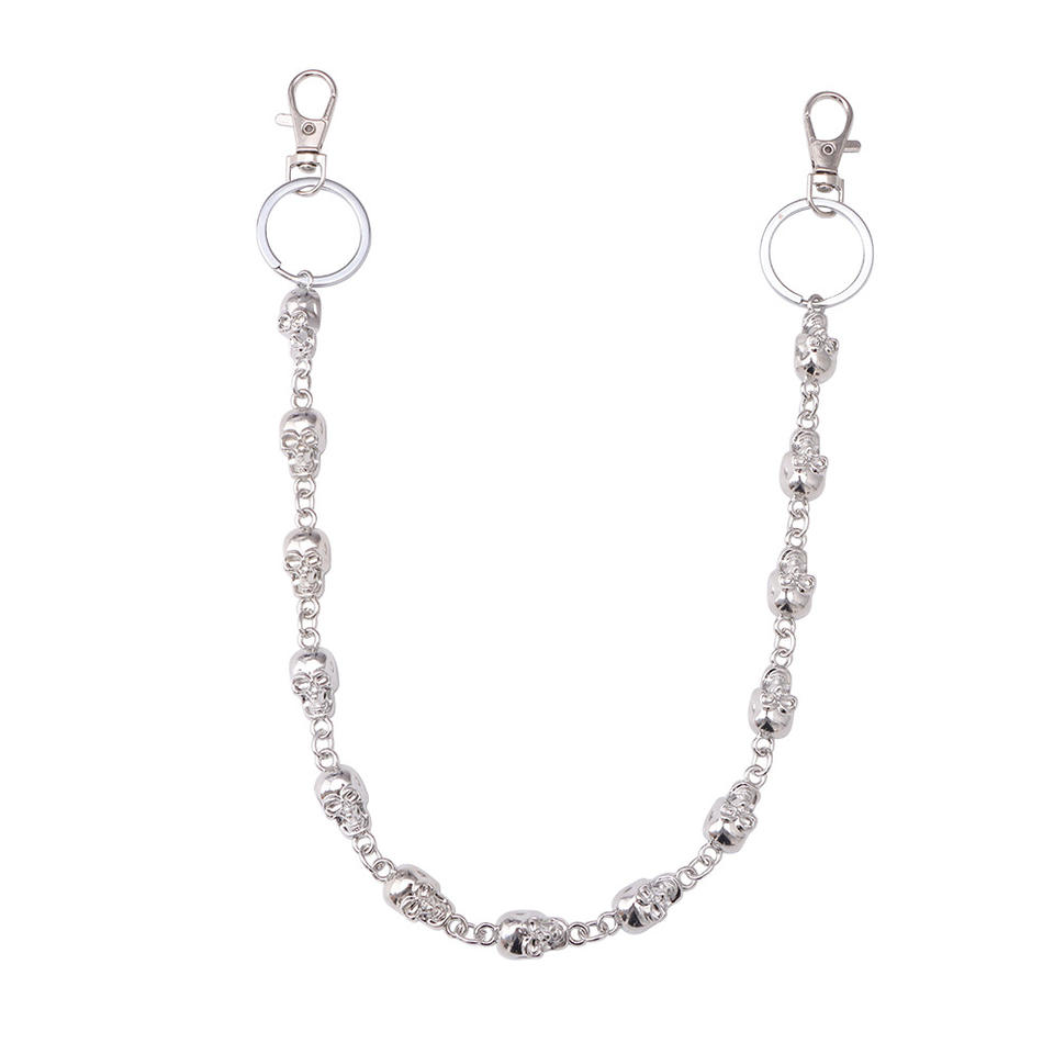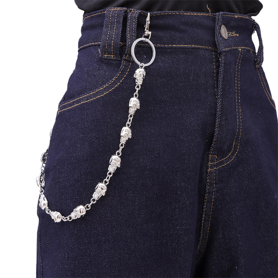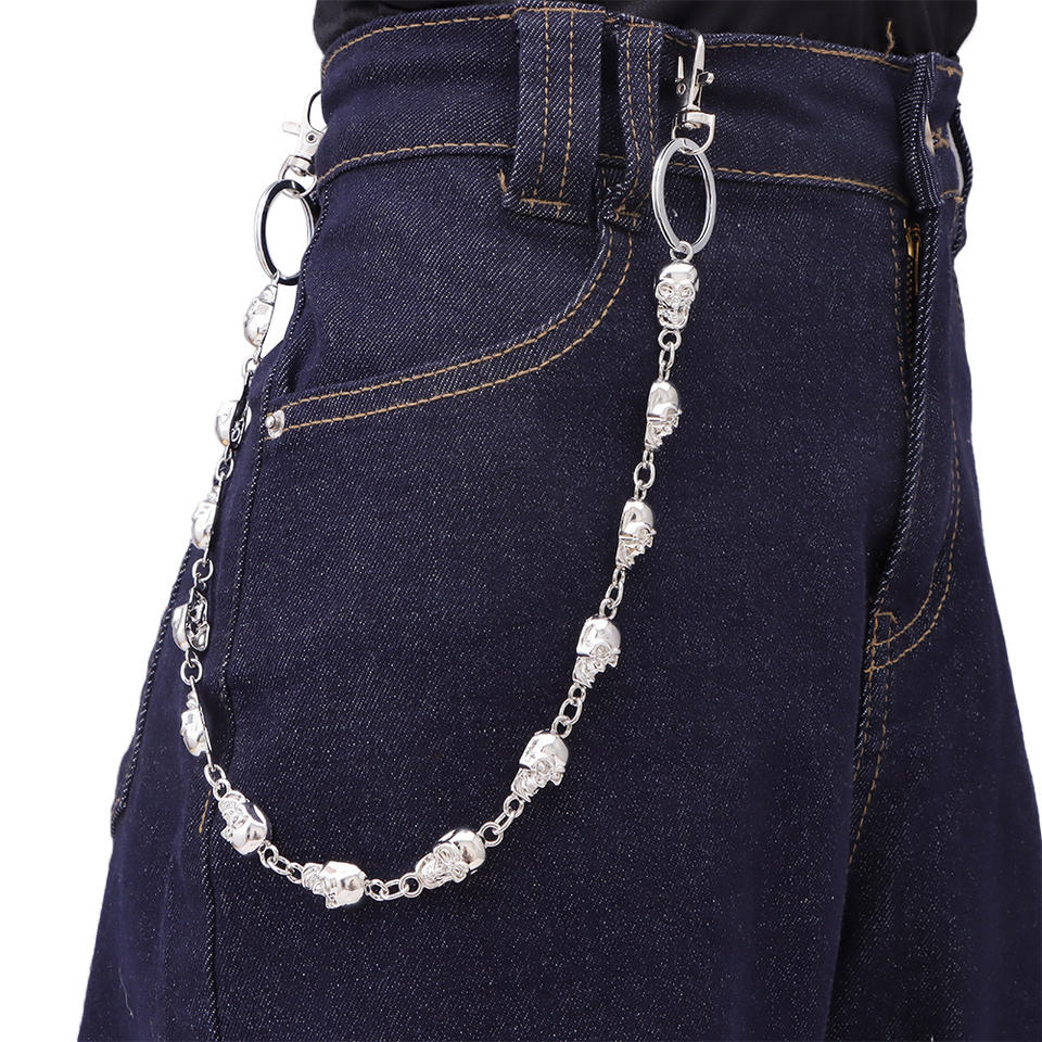 Chaîne de taille Crâne pour Hommes, Style Hip Hop en Argent Tibétain, Chaîne de Ceinture en Métal, Décoration Décontractée pour Pantalon, Design Squelette Simple Couche