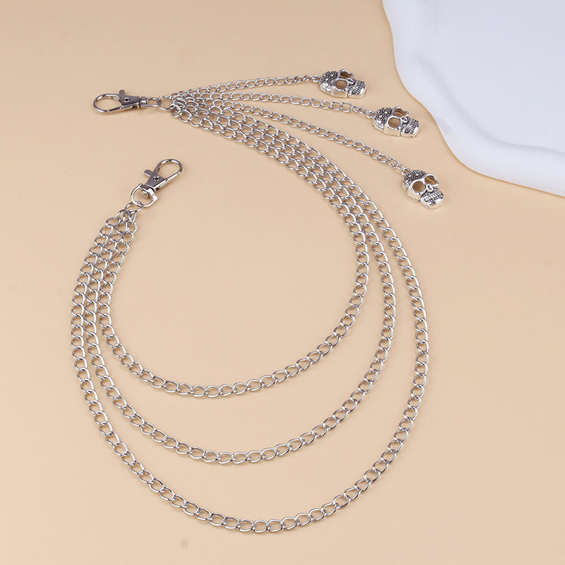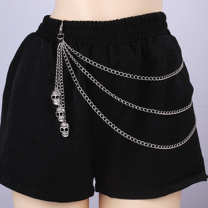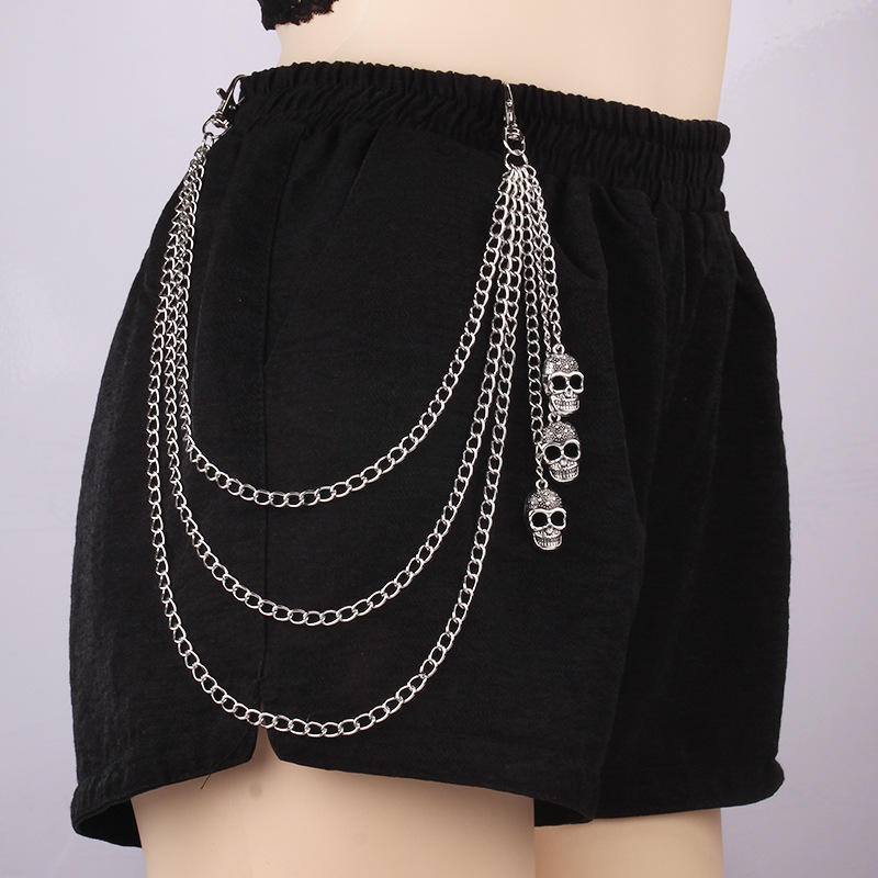 Chaîne de taille Crâne Triple Couche en Métal Style Punk, Chaîne de Corps Unisexe, Accessoire de Mode Quotidien, Bijou Décoratif en Alliage de Zinc