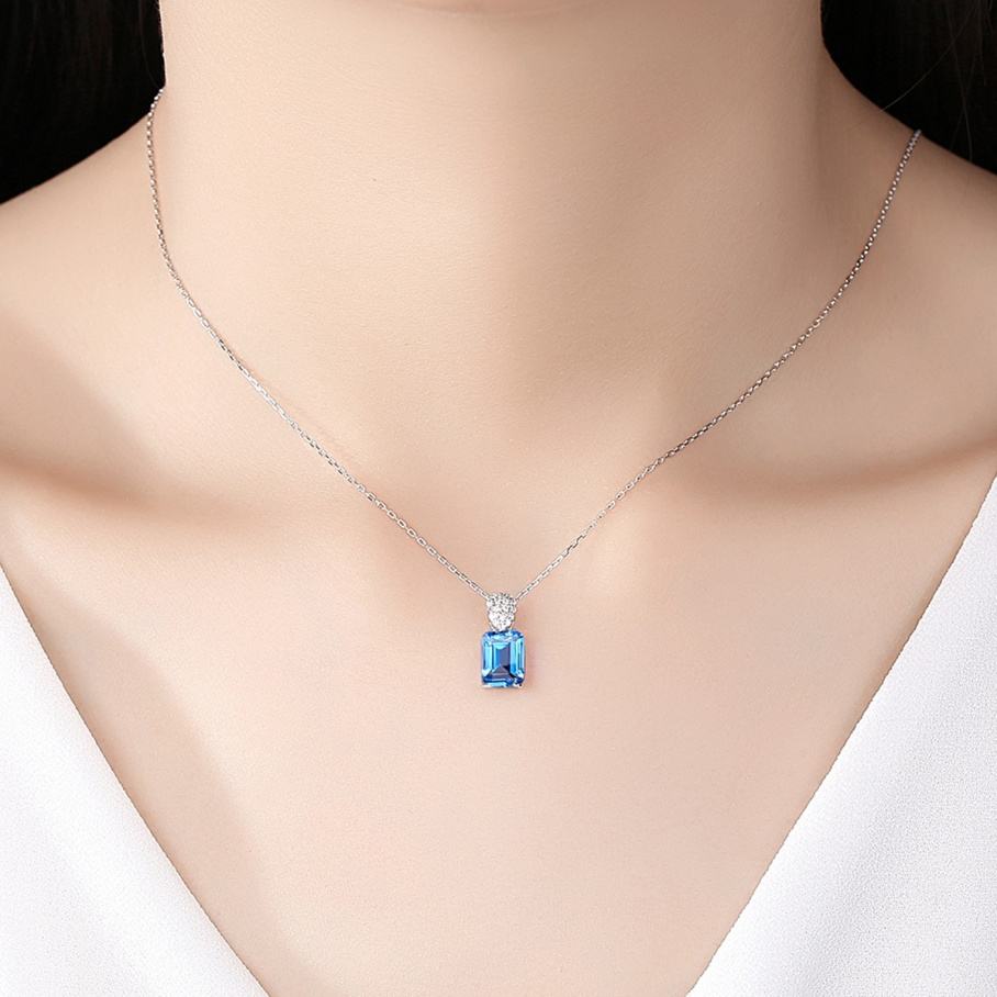 Ensemble collier et boucles d'oreilles en zircon bleu ciel, plaqué rhodium S925, design classique en forme de larme, coupe émeraude, fêtes, mariages, cadeaux CMA