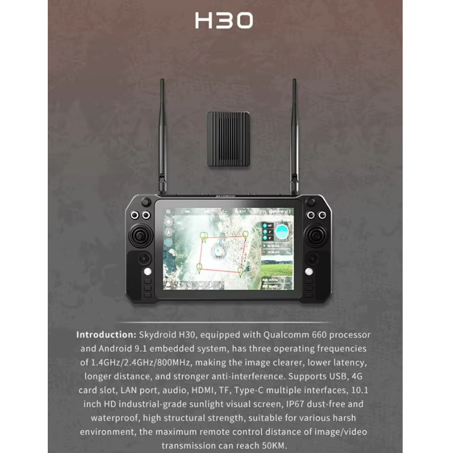 Télécommande professionnelle pour quadricoptère Skydroid H30 avec écran tactile de 10,1 pouces, portée de 50 km, système Android
