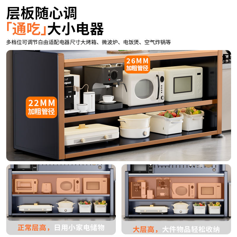Meuble de rangement multi-niveaux sur pied avec espace pour micro-ondes, design industriel, en acier au carbone, organisateur de cuisine