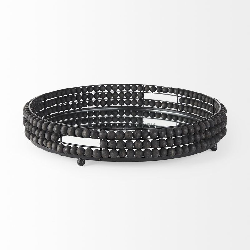 Plateau décoratif rectangulaire long noir mat avec rails latéraux pour le style de la console, le service de collations et de boissons