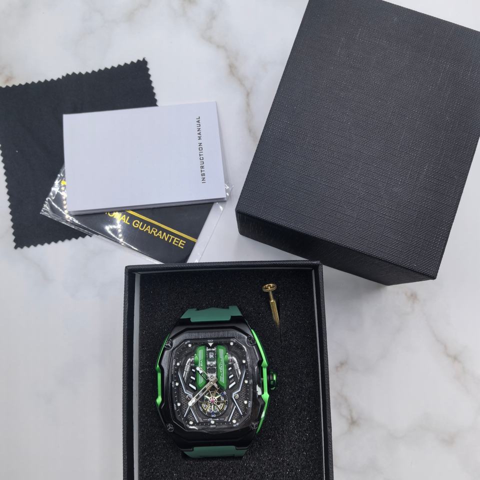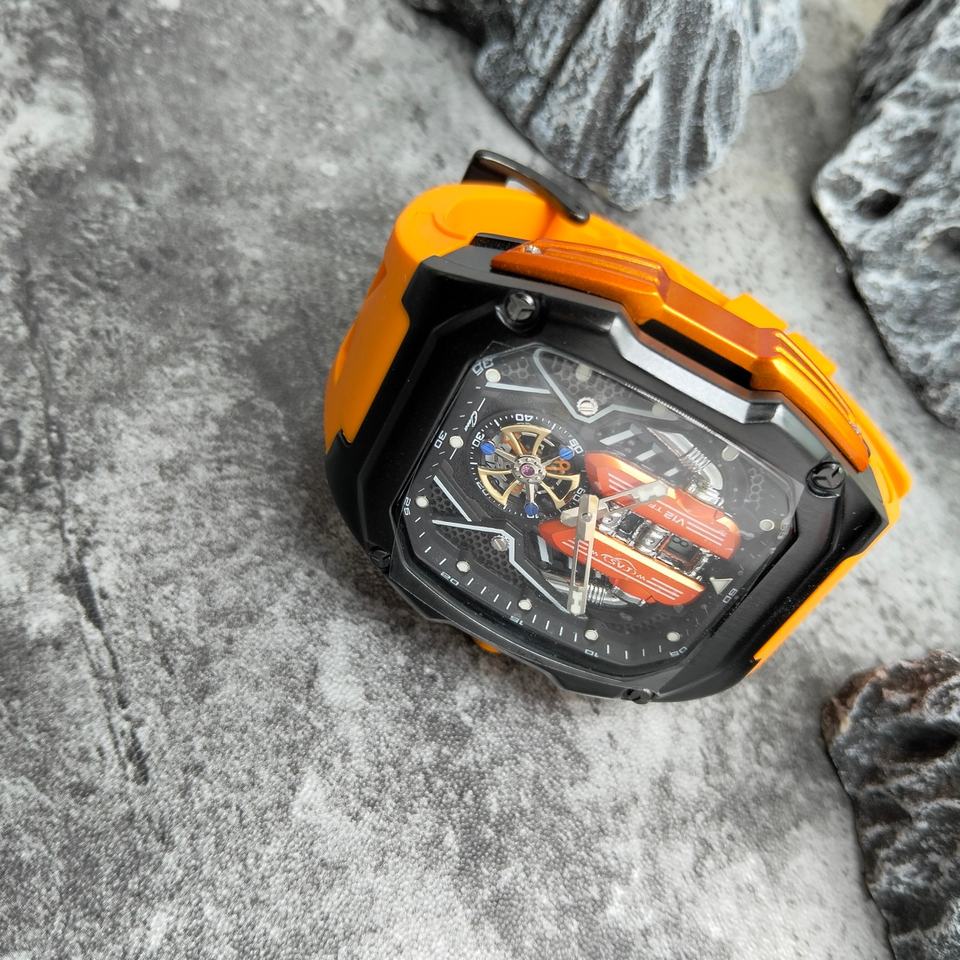Montre de poignet dynamique à quartz, design élégant, résistante aux chocs et étanche, avec bracelet en caoutchouc rouge, inspirée des montres F1 et des moteurs V12, livraison rapide
