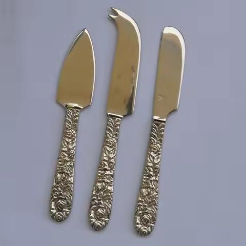 Ensemble élégant de serveurs à fromage en acier inoxydable doré avec poignée design, service moderne