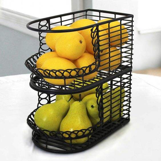 Corbeille à fruits en métal noir à deux couches, moderne et élégante, parfaite pour embellir votre maison, table principale et cuisine, panier tendance à bas prix