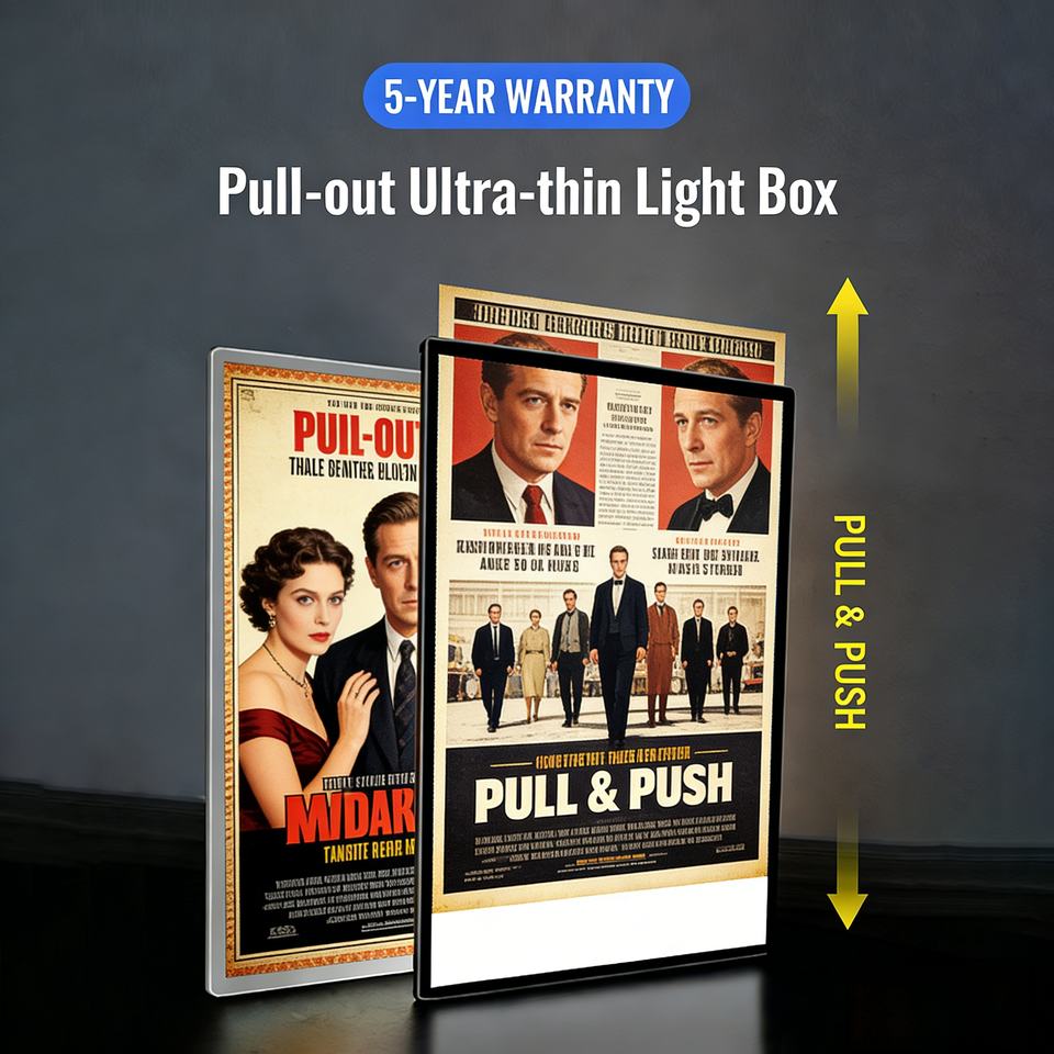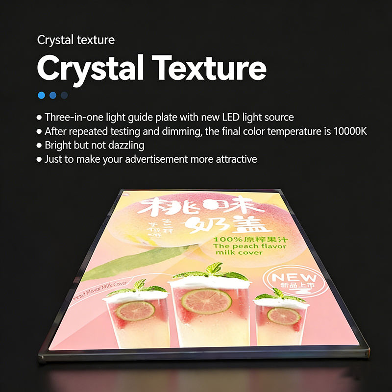 Boîte à lumière élégante et extractible, panneau en verre trempé incassable, pour les chaînes de magasins haut de gamme et les salons de beauté