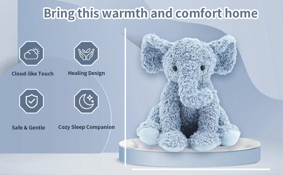 Jouet en peluche pour accompagner le sommeil - Éléphant en peluche bleu gris réconfortant pour les enfants
