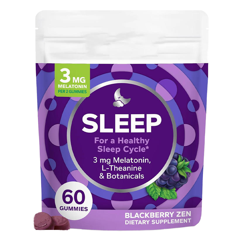 Bonbons Gommeux Sommeil 60 Unités Soutien Occasionnel au Sommeil 3 mg Mélatonine L-Théanine Camomille Mélisse Aide au Sommeil Mûre