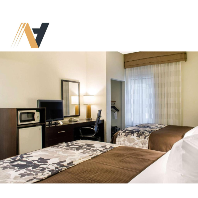 Chevet d'hôtel Sleep Inn, ensemble de chambre à coucher moderne pour hôtel, composant de qualité contractuelle, fabricant vietnamien, finition HPL, norme américaine