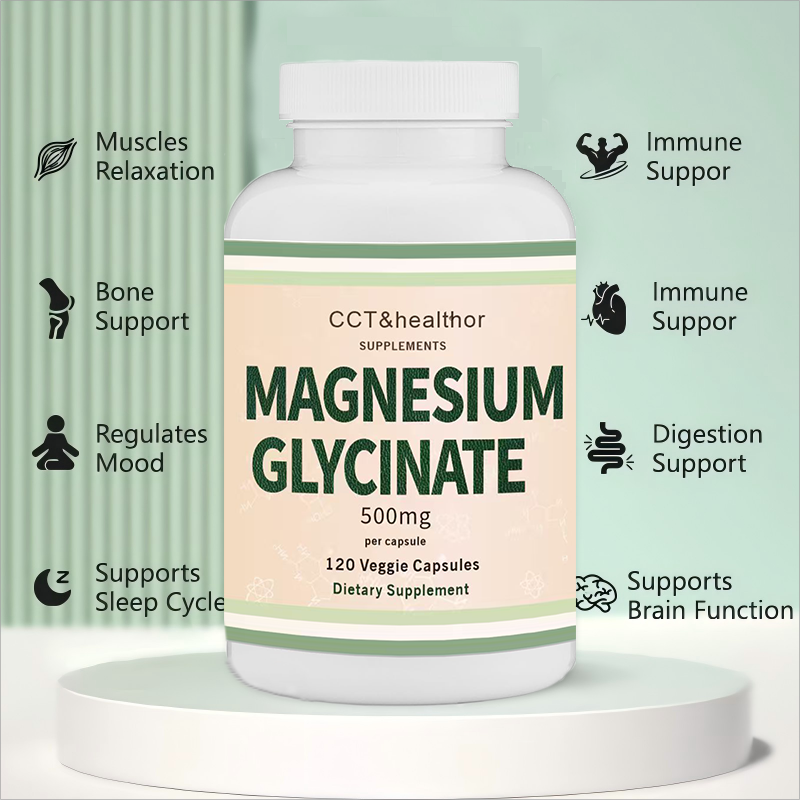 Complément alimentaire pour le sommeil, 500 mg de glycinate de magnésium chélaté en capsules pour une biodisponibilité élevée, qualité médicale, 120 capsules/flacon, adulte